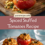 Spiced stuffed tomatoes are a wonderful way to turn simple vegetables into a satisfying vegan dinner. With warming spices, fresh herbs, and a comforting rice side, this dish is full of flavor while remaining light and wholesome. It’s an easy recipe that’s sure to become a regular favorite.