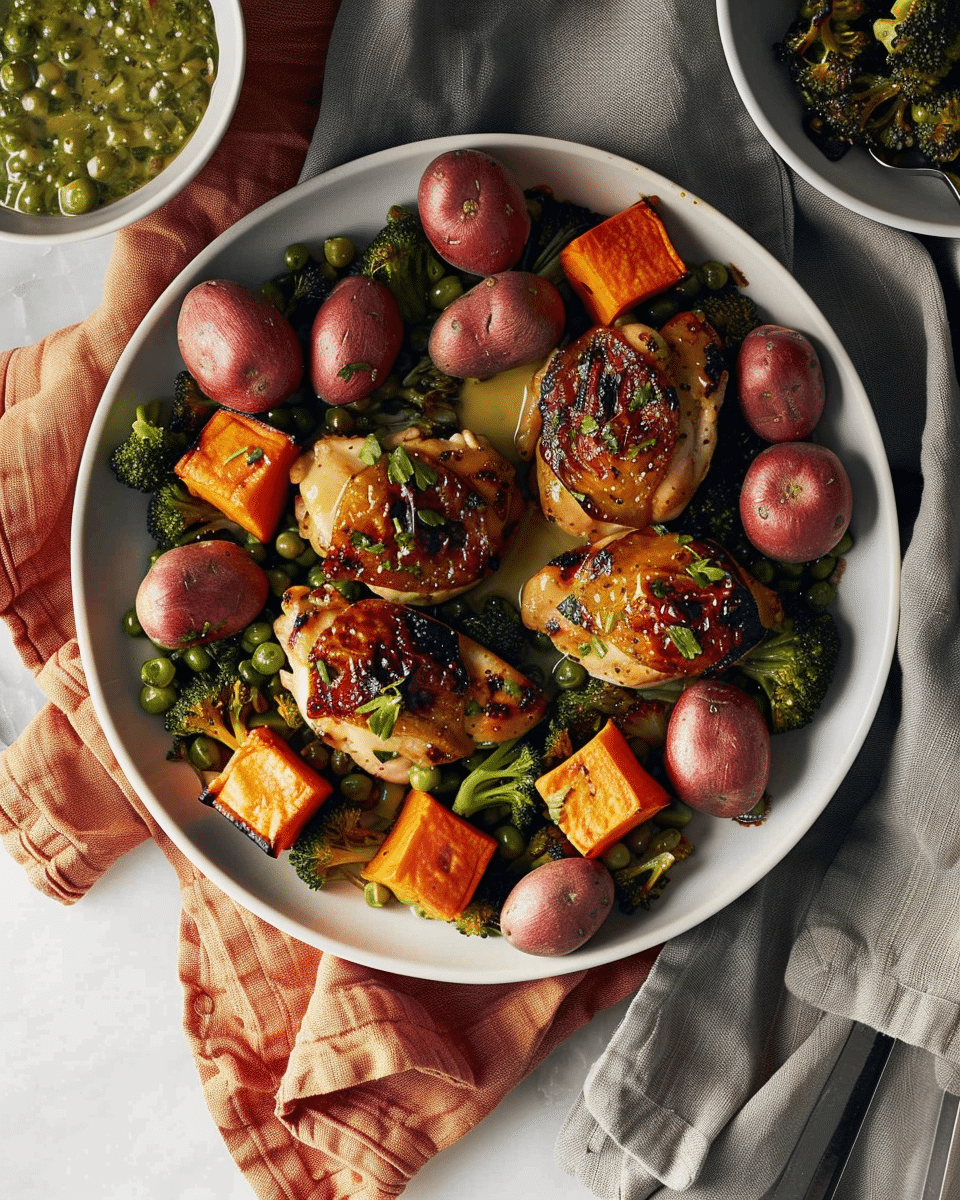 This is a simple and satisfying sheet pan meal prep recipe featuring spicy chicken, roasted sweet potatoes, and vibrant vegetables. In about 45 minutes, I can have a week’s worth of hearty, flavor-packed bowls that are easy to store, reheat, and customize with toppings or sauces. It’s the kind of recipe that makes healthy eating feel effortless.