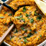 This spicy red lentil curry is a creamy, comforting, and flavor-packed dish made with coconut milk, crushed tomatoes, and bold spices. It’s a plant-based, one-pot meal that’s easy to prepare and perfect for weeknights or meal prep.