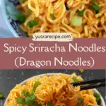 These spicy sriracha noodles (Dragon Noodles) are a quick, satisfying dish made with angel hair pasta, scrambled eggs, and a sweet-spicy sauce of sriracha, soy sauce, and brown sugar. Perfect for a fast main meal or flavorful side.