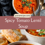 A hearty, creamy, and spicy tomato lentil soup made with red lentils, vegetables, and warming spices. This easy, plant-based recipe is perfect for cozy dinners, meal prep, and healthy eating.