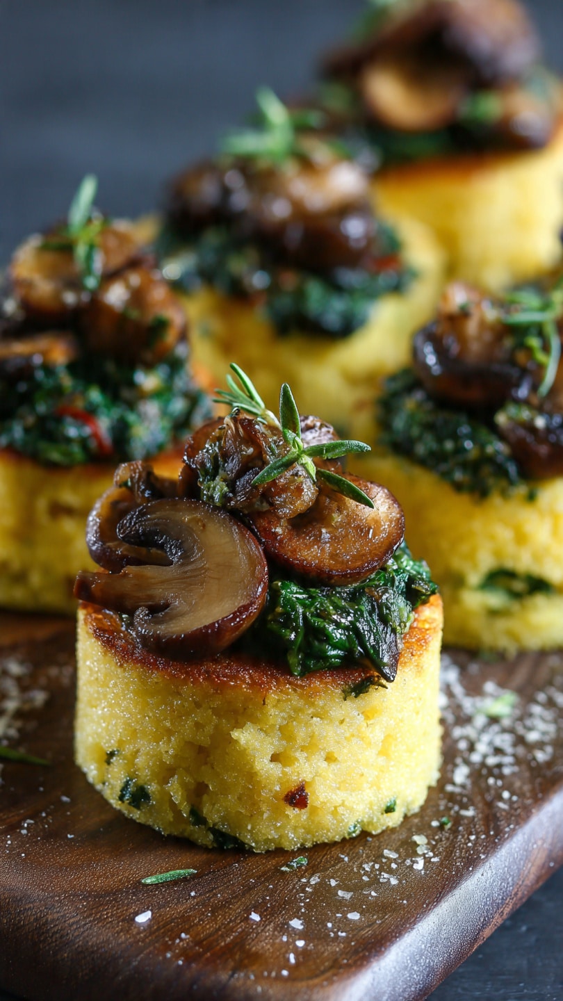 Spinach and Mushroom Polenta Stacks are a comforting, layered vegetarian dish featuring creamy polenta rounds stacked with a savory spinach and mushroom topping. Wholesome, flavorful, and elegant enough for entertaining.