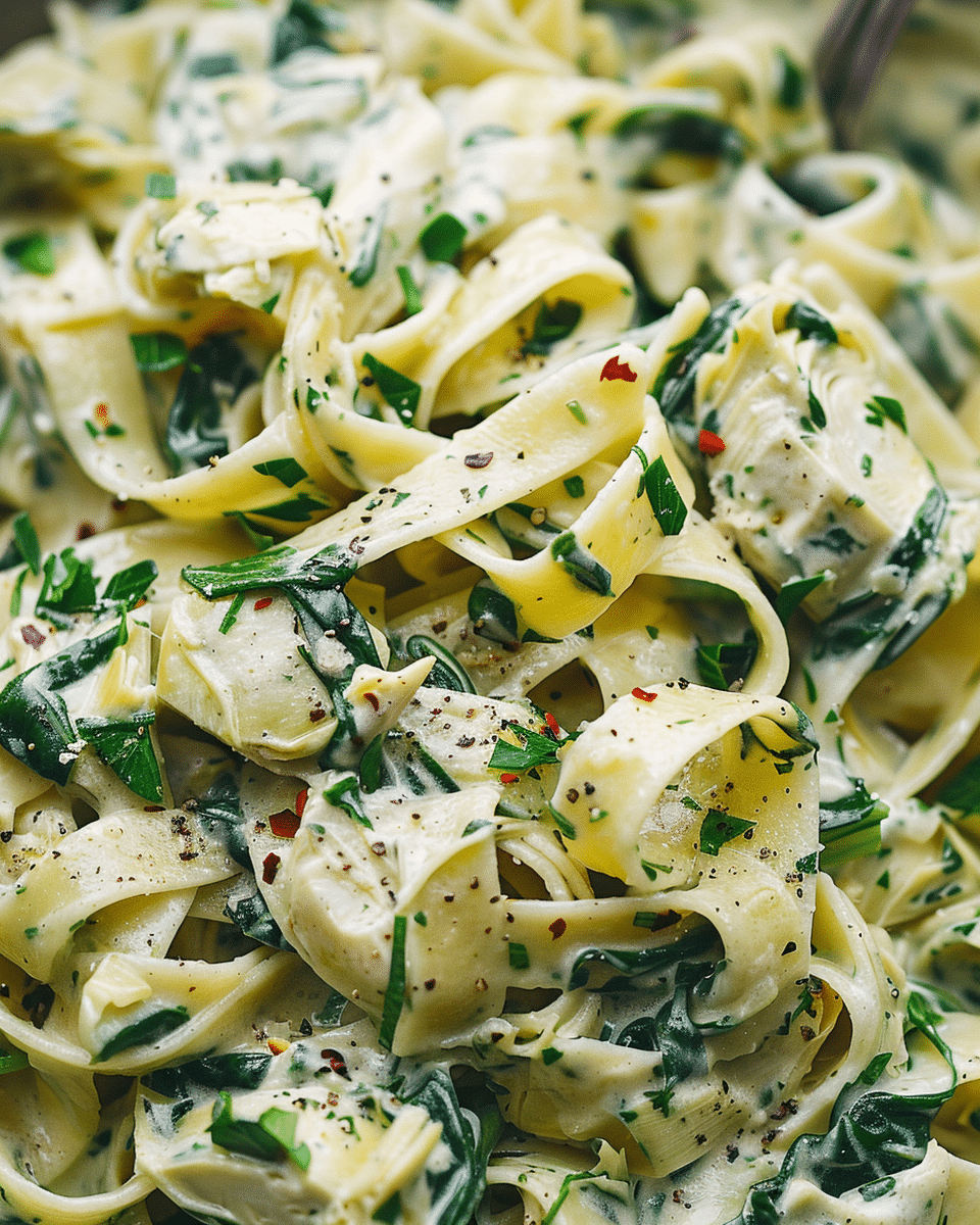 Spinach Artichoke Pasta transforms the classic party dip into a hearty, creamy pasta dish. Made with tender spinach, artichokes, and a cheesy, garlicky sauce, it’s a comforting weeknight meal ready in just 30 minutes.