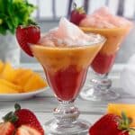 Strawberry Mimosas Mocktail is a refreshing non-alcoholic sparkling drink made with fresh strawberries, citrus juice, and fizzy sparkling water for a vibrant and celebratory beverage suitable for all ages.