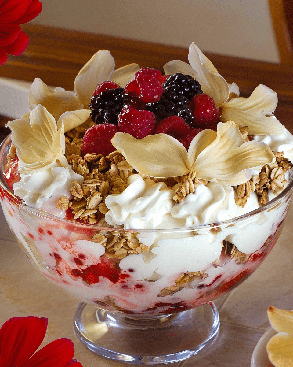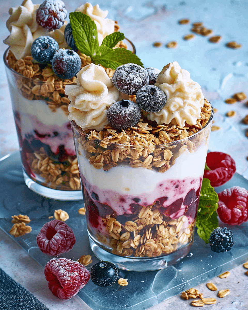 This refreshing Summer Berry Parfait with Yogurt and Granola layers fresh berries, banana slices, creamy vanilla yogurt, wheat germ, and crunchy granola for a vibrant, nutritious treat. Perfect for breakfast, a light snack, or a healthy dessert, it’s easy to make and bursting with texture and flavor.