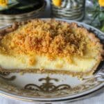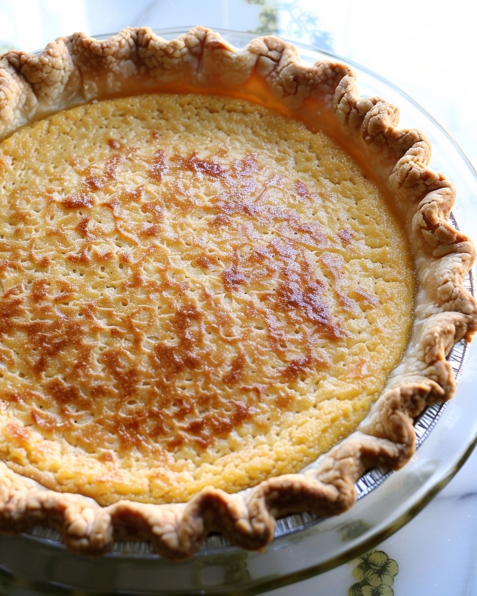 A creamy custard pie blended with sweet corn and warm nutmeg, baked in a flaky crust for a comforting dessert with subtle sweetness and a smooth, rich texture.