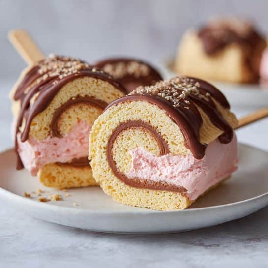 These Swiss roll cake pops combine a light, fluffy sponge with a naturally sweet raspberry filling, rolled, sliced, and served on sticks for a fun and elegant dessert. They are fruity, lightly sweetened, and perfect for special occasions or a creative baking project at home.