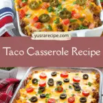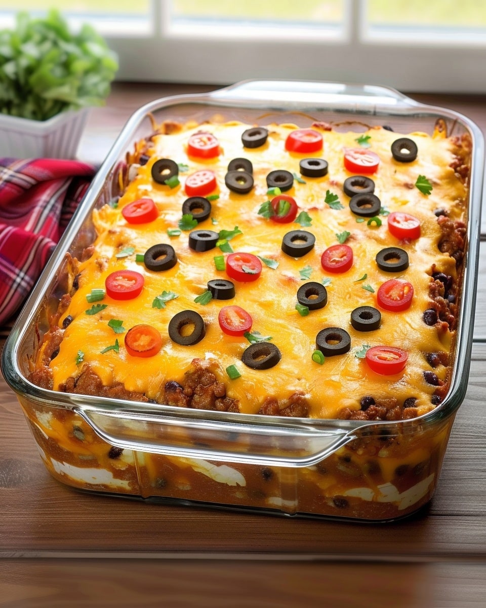 This taco casserole is a fast, comforting, and customizable way to enjoy taco night without the fuss of assembling individual tacos. With layers of chips, beans, beef, and cheese, plus a rainbow of fresh toppings, it’s sure to become a family favorite. Whether for a weeknight dinner or a casual gathering, this casserole delivers flavor, ease, and satisfaction in every bite.