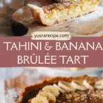 Tahini & Banana Brûlée Tart is a sophisticated yet comforting dessert that pairs the nuttiness of tahini with ripe bananas in a silky custard, all nestled in a buttery tart crust and topped with a crisp caramelized sugar layer.