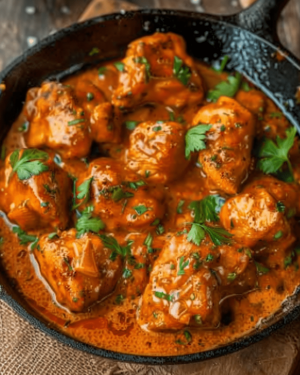 This skillet-style butter chicken is all about bold, comforting flavors and quick preparation. Tender chicken bites are seared until golden, then coated in a rich garlic butter sauce with a touch of sweetness and brightness. It is a simple yet indulgent meal that feels like a restaurant-style dinner made right at home.