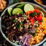 These Thai Sweet Chilli Beef Bowls feature savory-sweet caramelized beef mince served over jasmine rice, topped with a zesty drizzle sauce, crunchy cashews, and fresh vegetables. It’s a 15-minute, flavor-packed meal ideal for weeknights or meal prep.