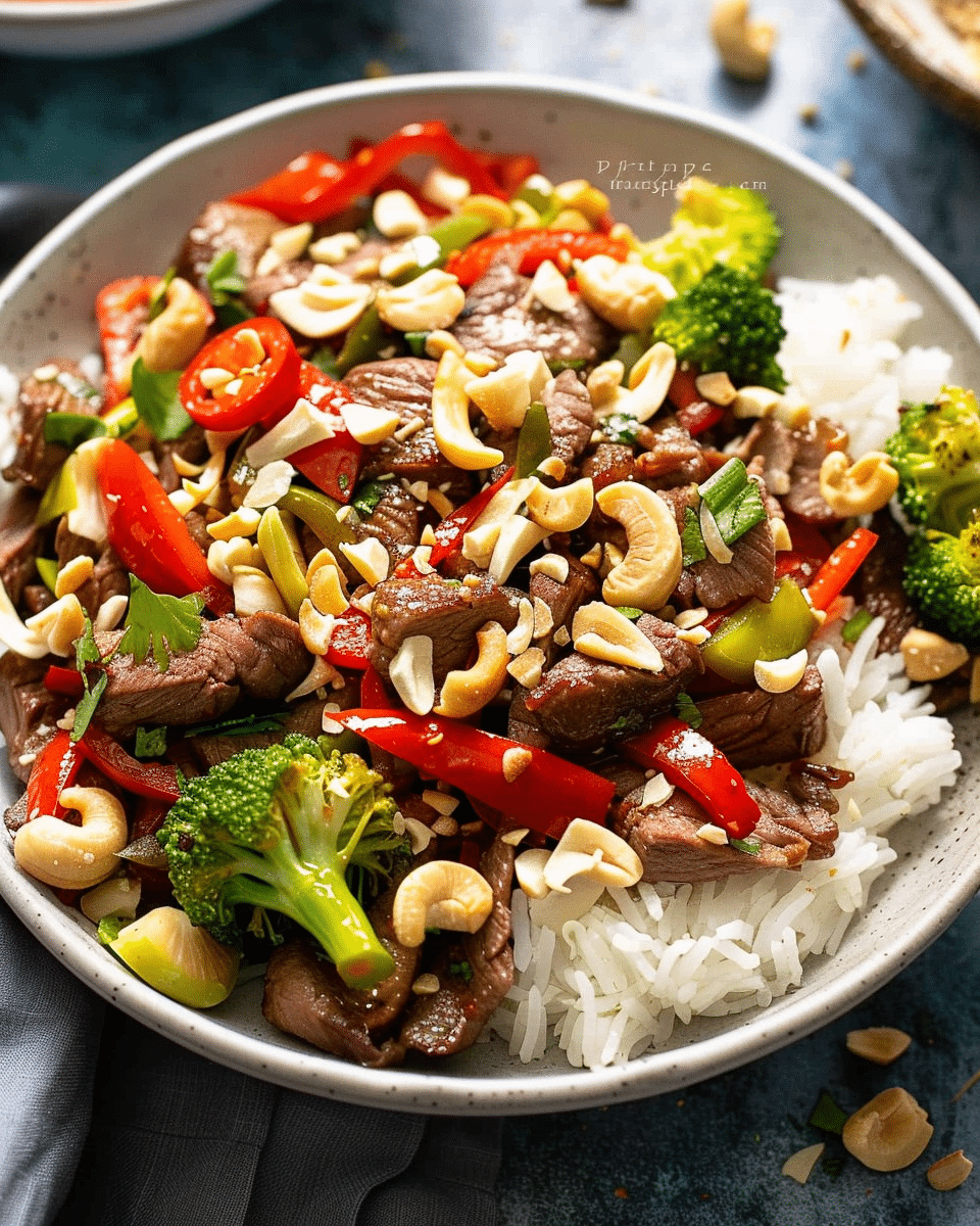 This Thai Sweet Chilli Beef Bowl is a quick, flavor-packed meal that combines the best of Thai-style stir-fries and modern rice bowls. Tender beef mince is cooked with a caramelized sweet chilli sauce, served over fluffy jasmine rice, and finished with a refreshing drizzle sauce and crunchy toasted cashews. Perfect for weeknight dinners, it’s fast, balanced, and easily customizable with your favorite vegetables.