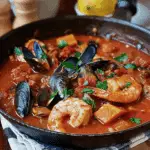 This irresistible shrimp and mussel stew is a flavorful coastal-inspired dish featuring tender shrimp, briny mussels, aromatic vegetables, and a bold tomato broth with just the right amount of heat. It’s a one-pot meal perfect for cozy nights or entertaining guests.