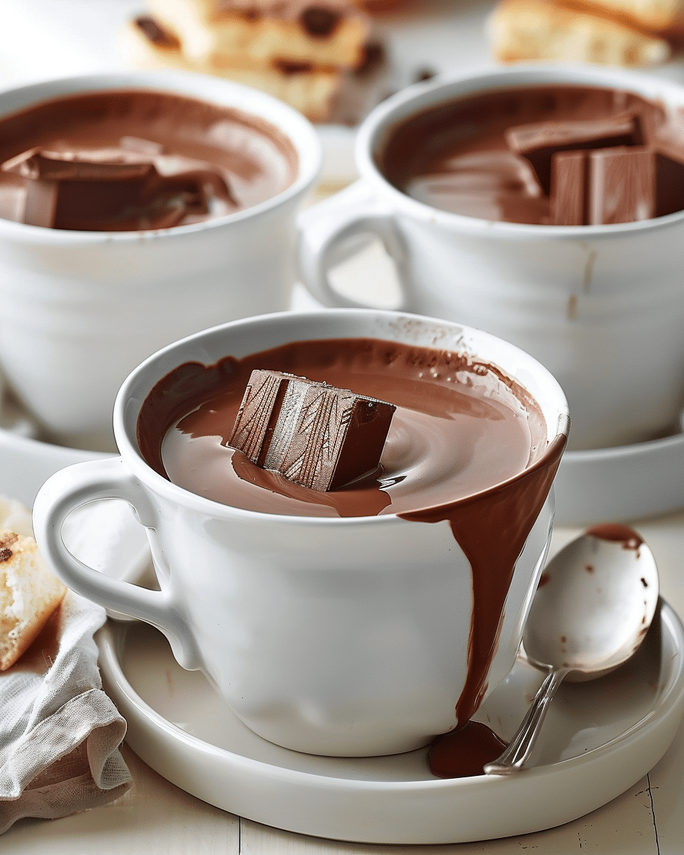 This Thick Italian Hot Chocolate (Cioccolata Calda) is rich, creamy, and velvety—like drinking warm chocolate pudding. Made with real dark chocolate and cocoa powder, it’s a cozy and indulgent treat perfect for cold days.