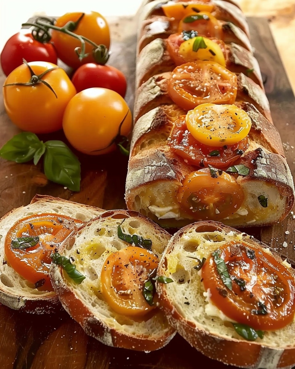 This recipe transforms simple bread into a gourmet-style dish with minimal effort. The combination of garlic, fresh basil, and juicy tomatoes makes it a crowd-pleaser for any meal. It’s quick to prepare, perfect for pairing with pasta, salads, or soups, and can easily be customized with cheese or extra herbs for added richness.