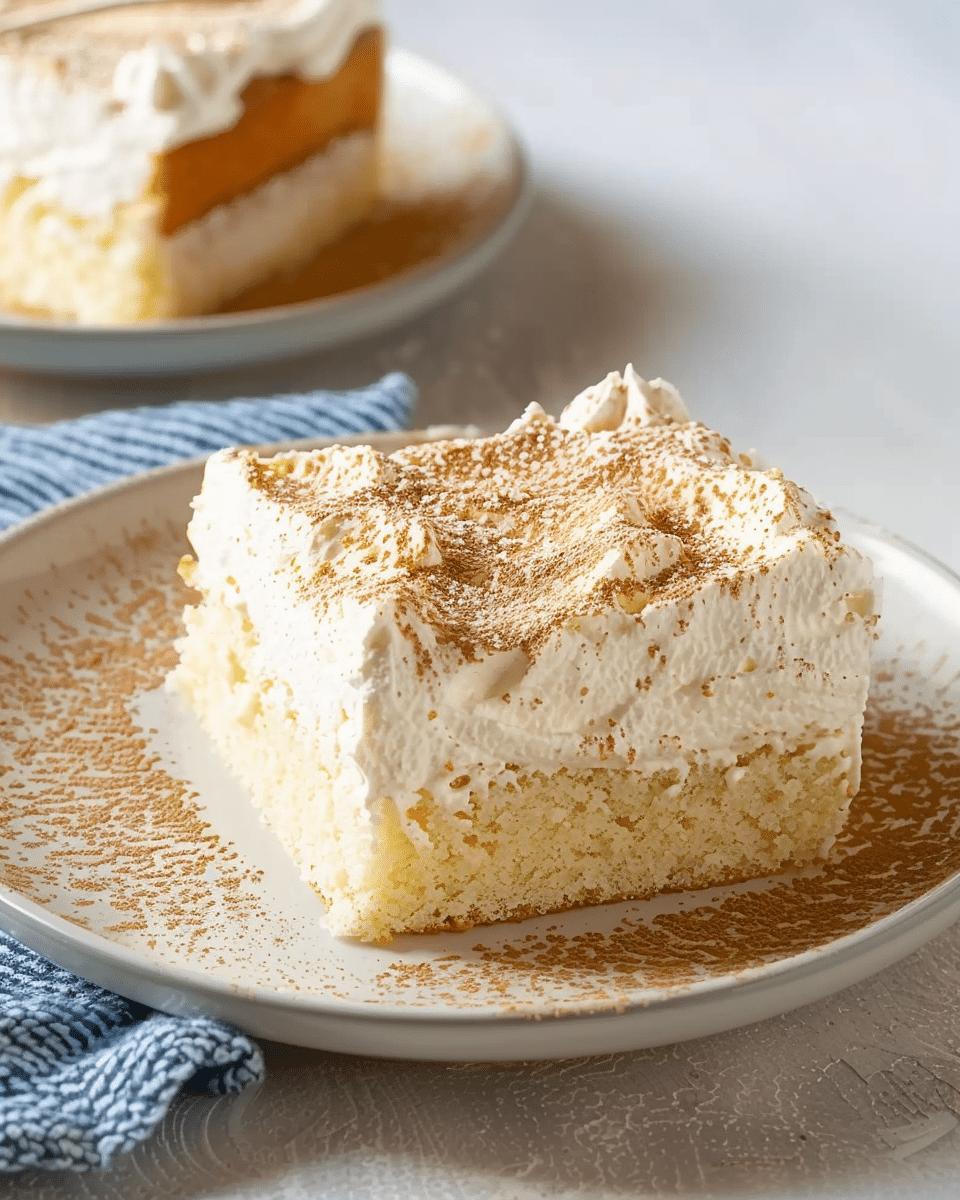 A light and airy sponge cake soaked in three milks—evaporated, condensed, and whole milk—then topped with whipped cream. This classic Latin American dessert is creamy, refreshing, and perfect for gatherings or celebrations.
