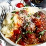 These turkey meatballs with tomatoes and basil are tender, juicy, and packed with fresh herb flavor. Made with sour cream for added moisture and simmered briefly with fresh tomatoes and basil, they’re perfect served as a comforting main dish or as a crowd-pleasing appetizer.