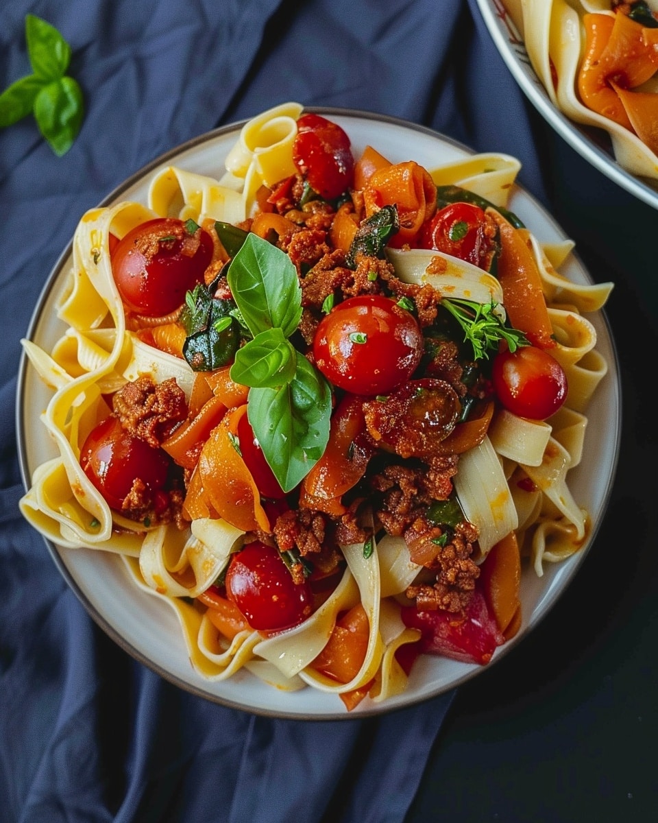 A comforting Turkish-inspired pasta dish featuring seasoned ground beef, creamy garlic yogurt, and a fragrant spiced butter sauce served over tender pasta. This deconstructed manti delivers bold Mediterranean flavors in a simple, satisfying meal.