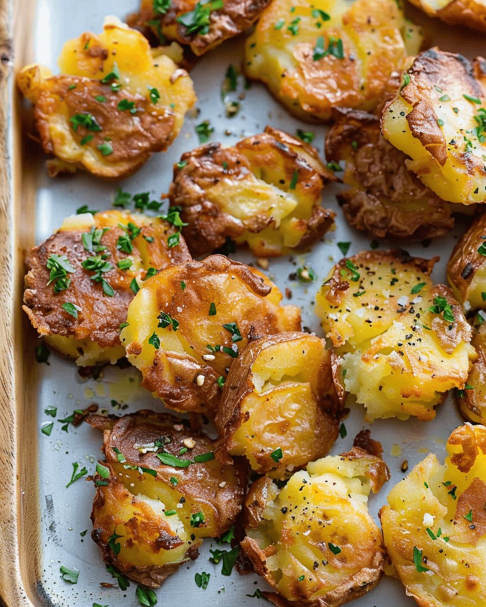 I like that this recipe turns something as simple as potatoes into an irresistible side dish or even a snack. The method is straightforward: boil, smash, drizzle, bake. The steam-drying steps and the butter-and-oil combo make all the difference in achieving the perfect crunch. I also enjoy how versatile they are—I can serve them alongside steak, chicken, or fish, or I can snack on them straight from the tray.