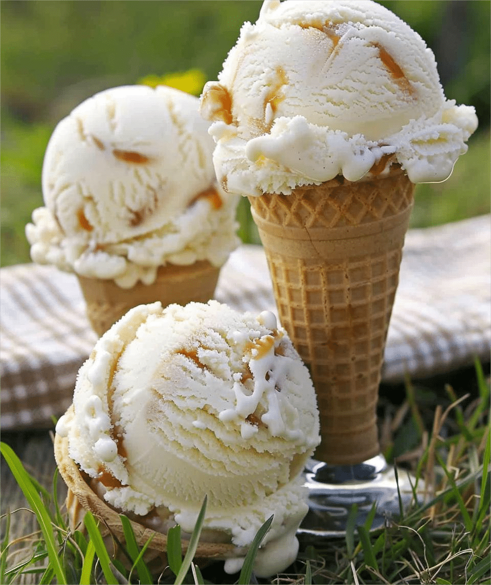 This homemade ice cream blends creamy vanilla base with decadent ribbons of caramel — rich, smooth, and perfect for hot days or dessert lovers looking for a treat that feels indulgent yet comforting. The swirl of caramel adds a sweet-buttery contrast that pairs beautifully with the vanilla, making every scoop feel gourmet while staying easy to make at home.