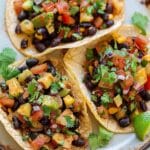 These vegan black bean tacos with veggies are quick, flavorful, and filling. Loaded with sautéed zucchini, onion, tomato, corn, and seasoned black beans, they make a perfect plant-based dinner ready in just 15 minutes.