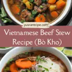 This Vietnamese Beef Stew, known as Bò Kho, is a rich and aromatic dish featuring tender chunks of slow-cooked beef, hearty carrots, and a deeply flavorful broth infused with lemongrass, ginger, and warm spices. It’s comforting, satisfying, and perfect for cozy meals.