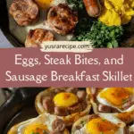 A hearty, one‑pan breakfast skillet with tender steak bites, flavorful sausages, sautéed peppers, and buttery eggs — warm, filling, and satisfying to start the day.