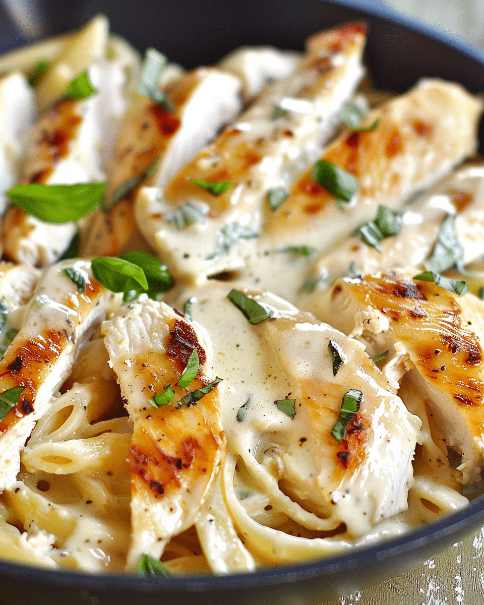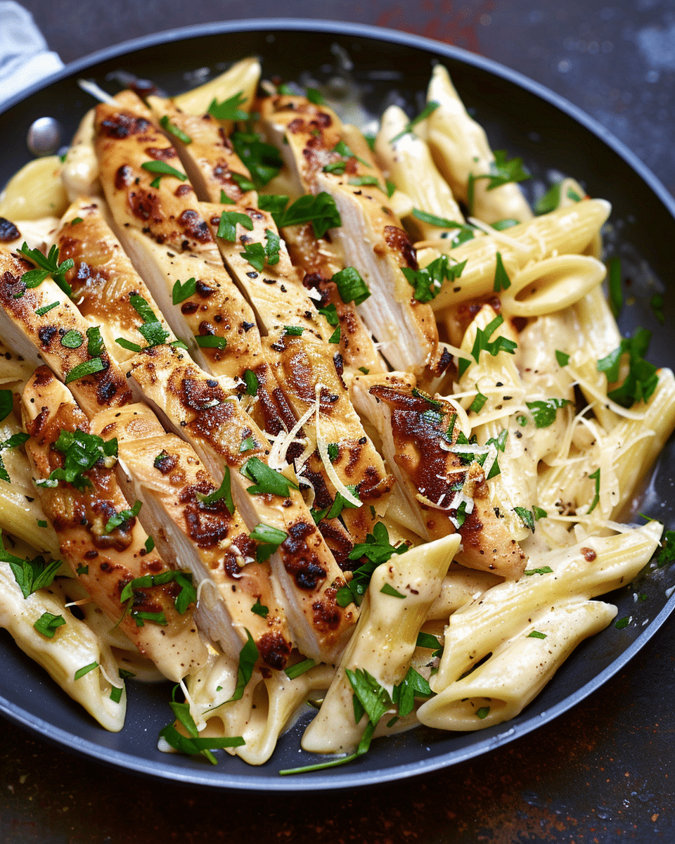 This creamy white sauce chicken pasta features tender seared chicken, a rich garlic-parmesan sauce, and perfectly cooked pasta—all made in one pot and ready in 30 minutes. Ideal for easy weeknight dinners.