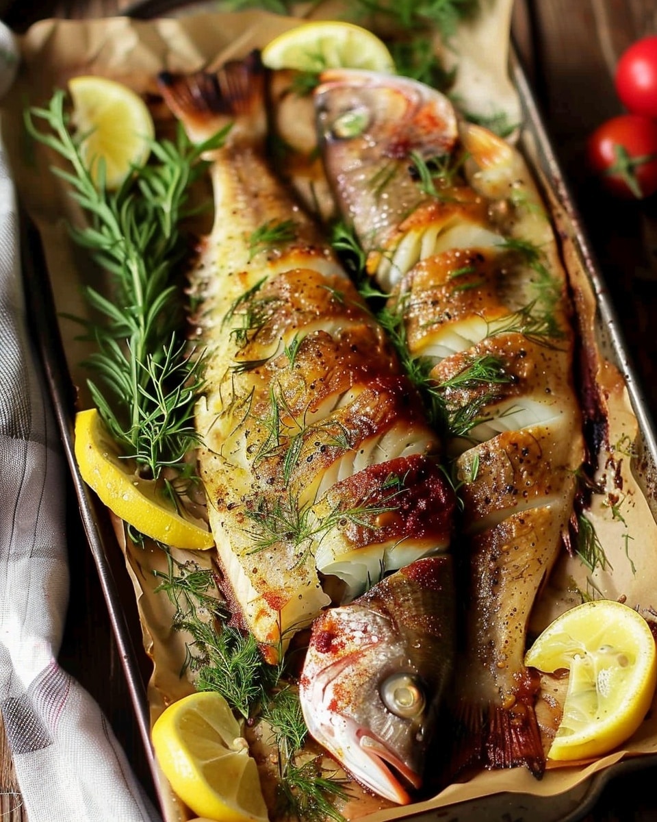 A beautifully roasted whole snapper stuffed with fresh herbs, garlic, and lemon, then finished with a warm garlic and dill butter sauce. This elegant yet simple dish delivers tender, juicy fish with restaurant-quality flavor in under 30 minutes.