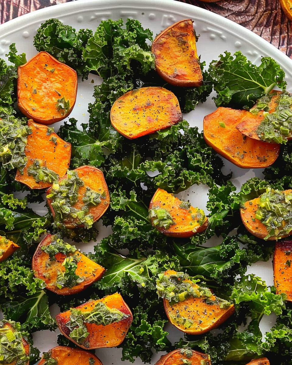 This vibrant dish brings together tender roasted sweet potatoes, deeply savory garlic-sautéed kale, and a fragrant homemade za’atar blend. It’s a colorful, nourishing side that feels just as satisfying as a main, with bold flavors and a comforting texture that works beautifully for everyday meals or special occasions.
